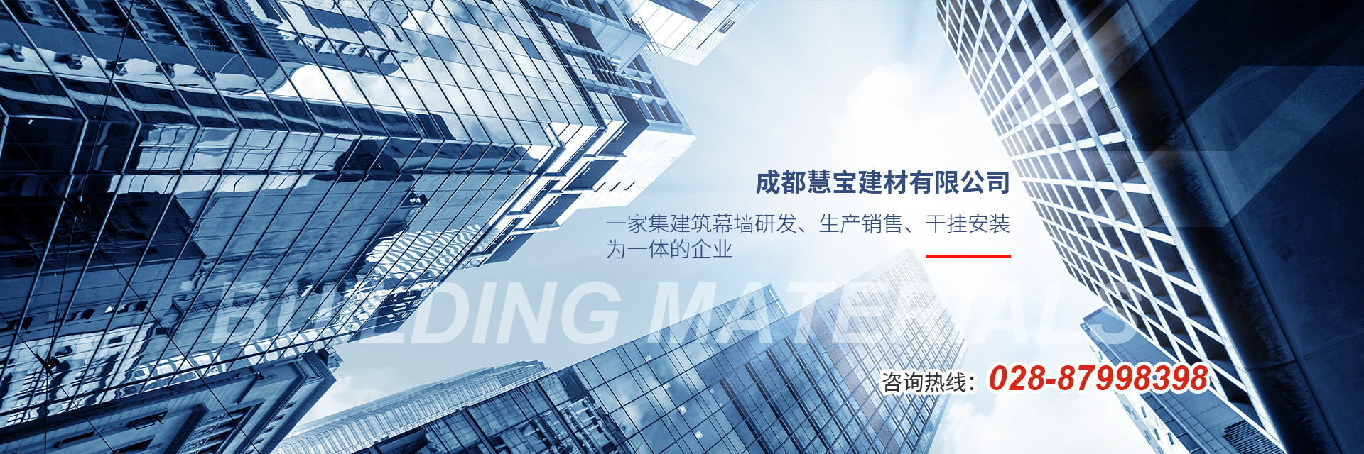 成都慧寶建材有限公司,成立于2008年,是一家集建筑幕墻研發(fā)、加工銷(xiāo)售、干掛安裝為一體的企業(yè)。公司秉承“一起創(chuàng)造,共同分享”的 企業(yè)理念,專注于幕墻背掛安裝系統(tǒng)安全解決方案。 公司擁有專業(yè)的工程技術(shù)、銷(xiāo)售及售后服務(wù)團(tuán)隊(duì),為客戶提供技術(shù)培訓(xùn)和技術(shù)咨詢。公司以市場(chǎng)為導(dǎo)向,質(zhì)量標(biāo)準(zhǔn)為原則,客戶滿意為宗旨,本著“誠(chéng)信和諧、合作共贏”的經(jīng)營(yíng)理念,繼續(xù)貫徹“創(chuàng)新進(jìn)取、追求卓越”的經(jīng)營(yíng)方針,為客戶提供更加優(yōu)良的服務(wù)! 查看更多